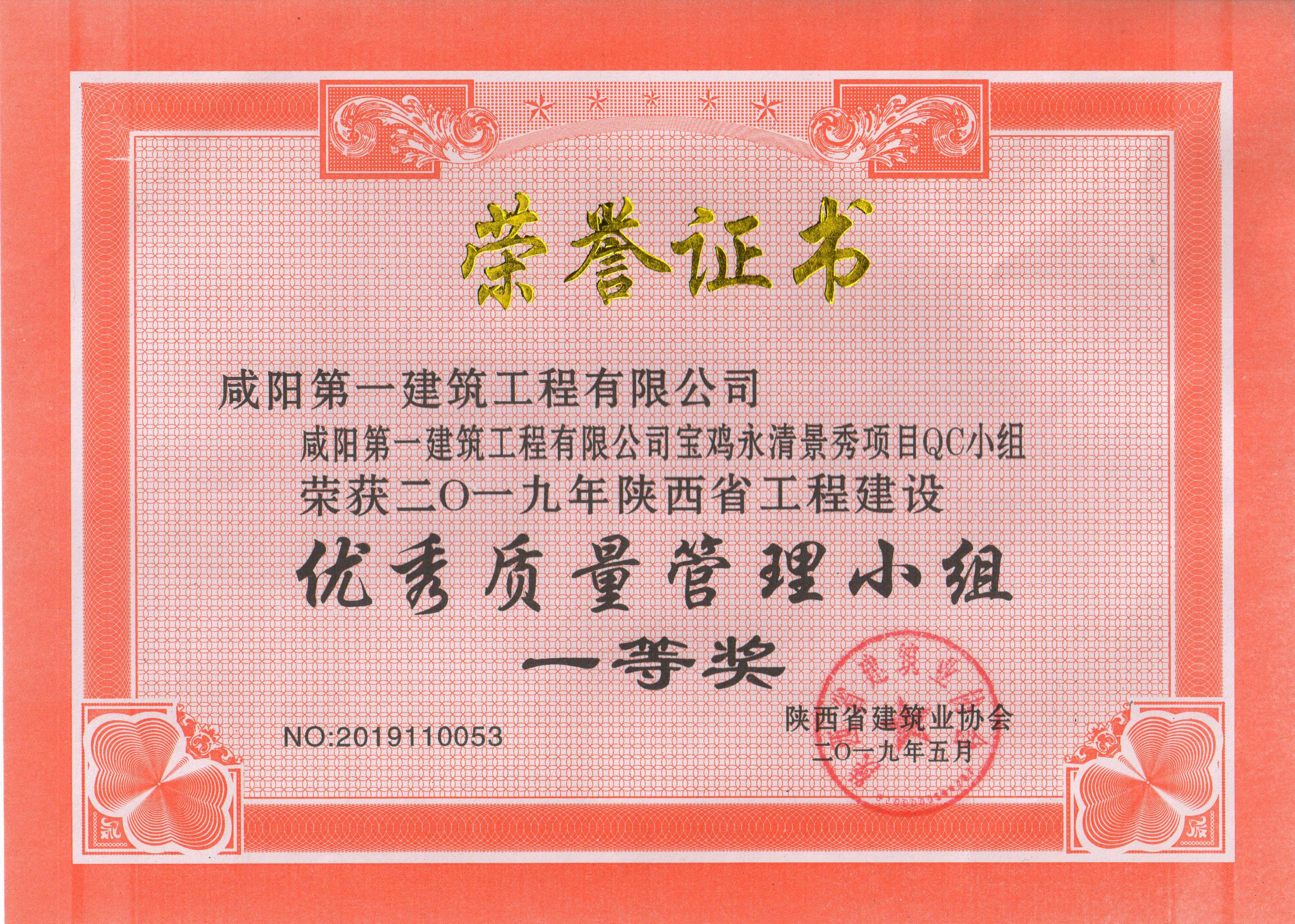 2019年QC成果獲獎證書