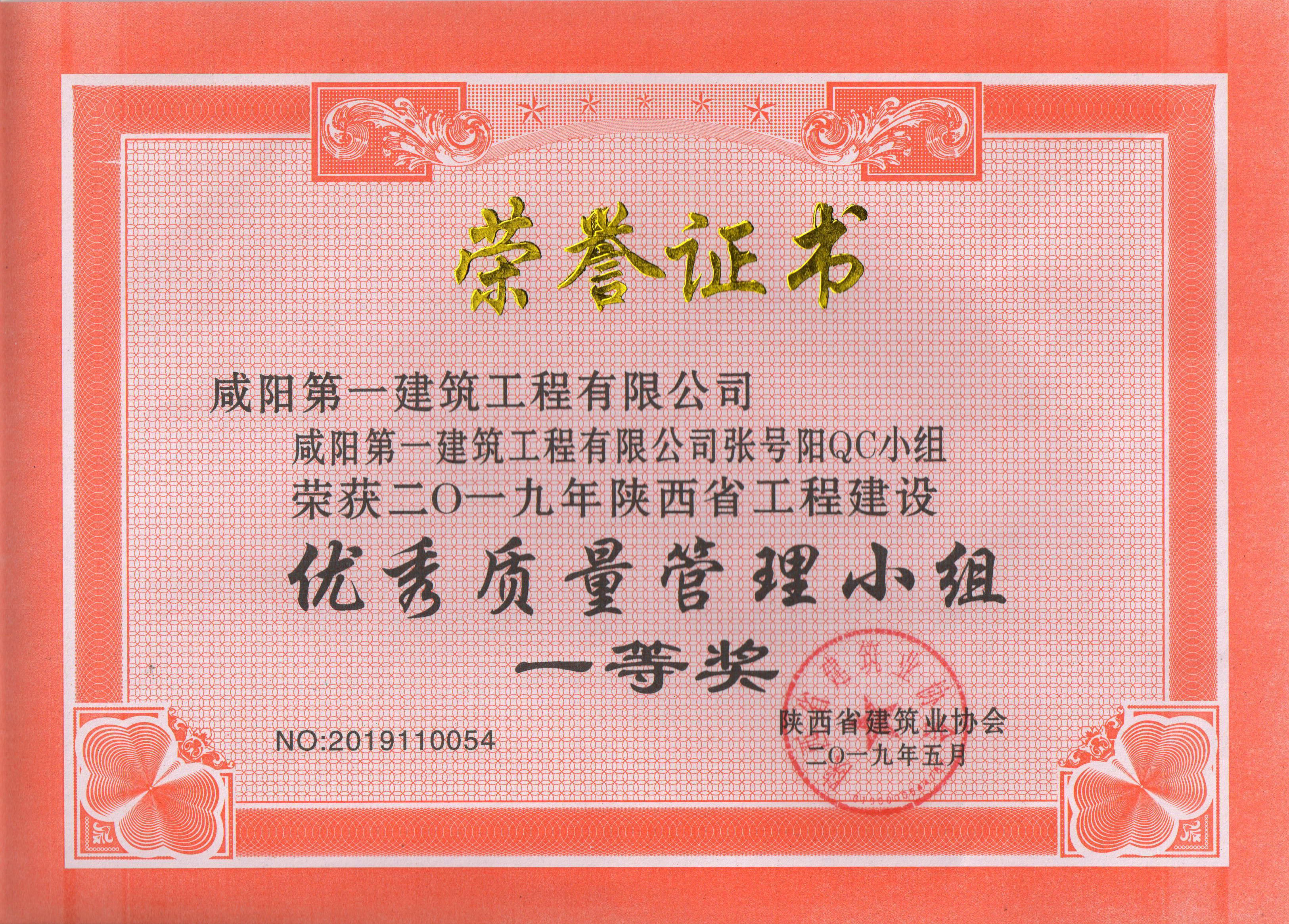 2019年QC成果獲獎證書